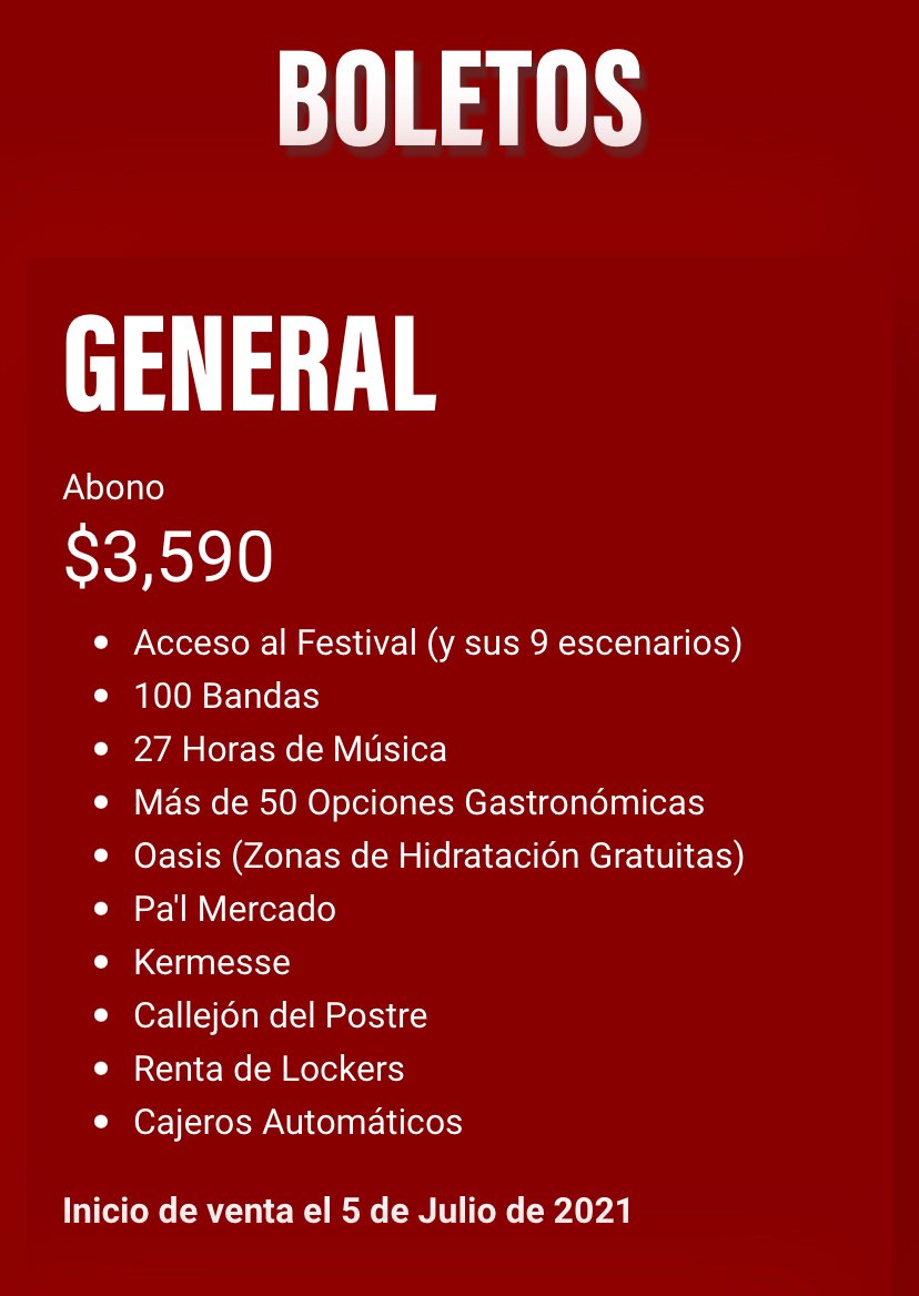 Los organizadores mandaron un comunicado a través de redes sociales, “Aún y cuando tenemos toda nuestra energía enfocada en que suceda este año, sabemos que existe incertidumbre en este momento, por lo que en caso de que no sea posible optaríamos por movernos definitivamente para el mes de abril de 2022″, detallaron. México Ya te comparte el elenco y los precios de tan esperado festival musical.