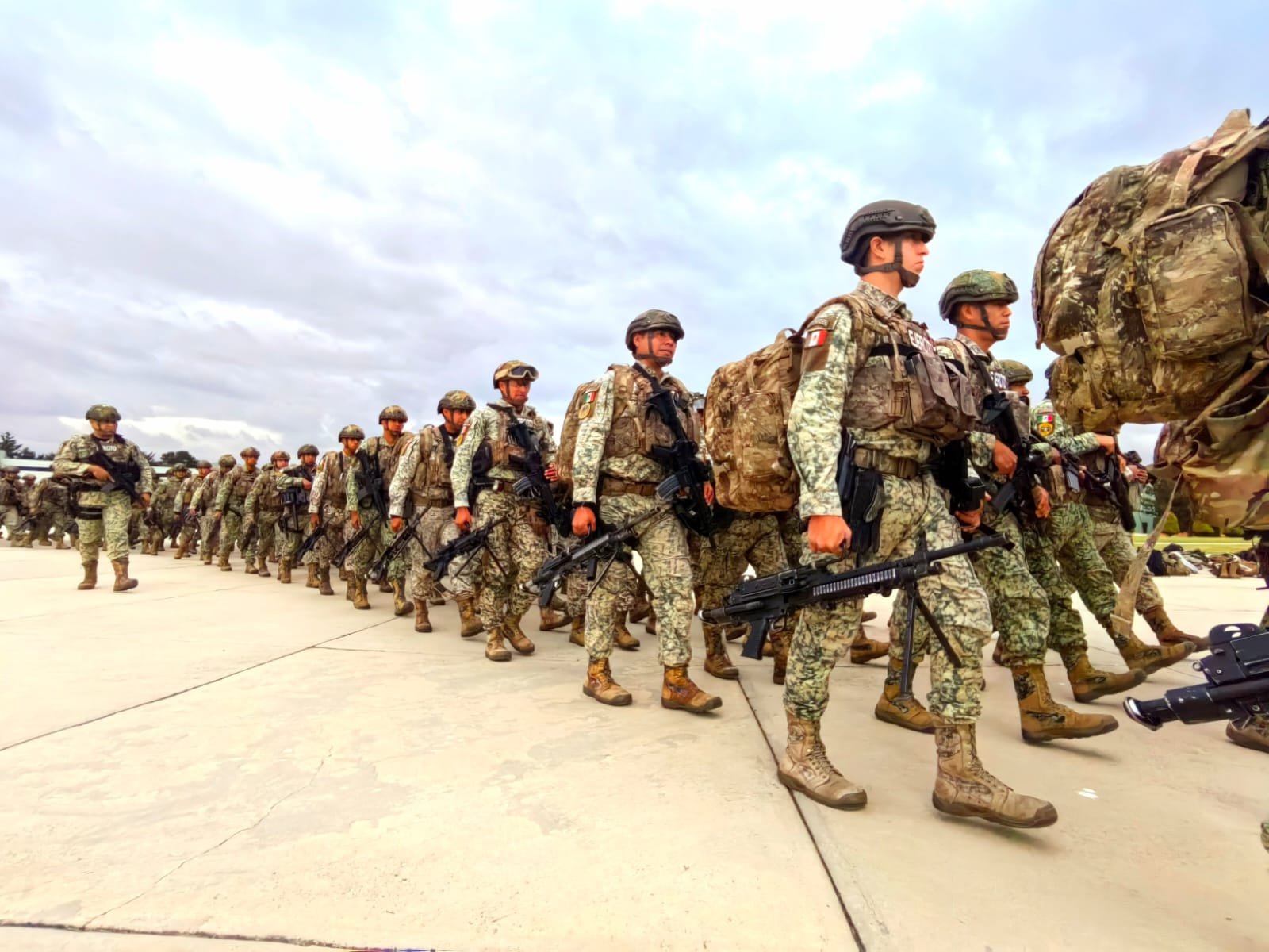 En total, el despliegue incluye mil 980 efectivos, entre ellos 180 de Fuerzas Especiales, así como cinco helicópteros de la Fuerza Aérea Mexicana.