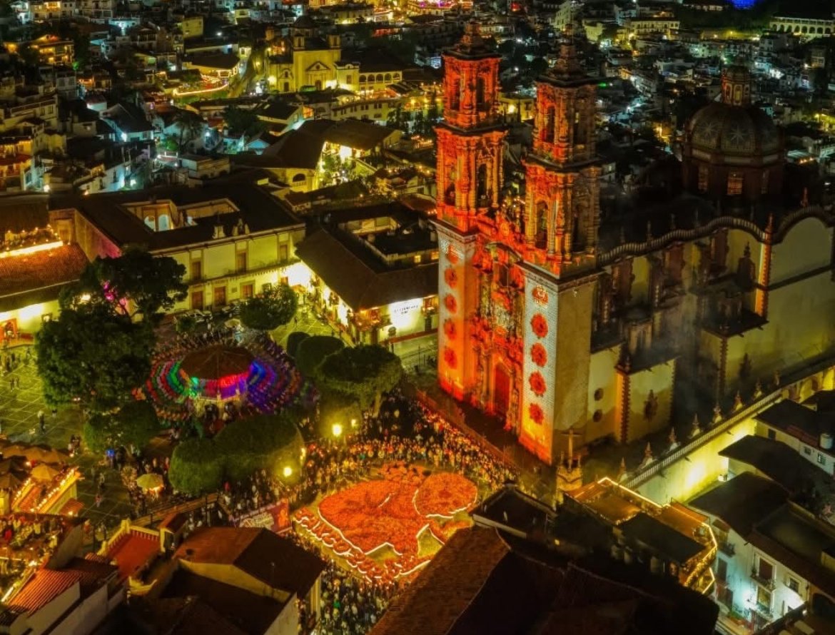 En el marco del Día de Muertos, el Pueblo Mágico de Taxco de Alarcón, Guerrero, se llenó de luz, color y tradición ya que se hizo en plena Plaza Borda un Catrín Playero gigante elaborado con miles de flores de cempasúchil, por lo que se podría decir que en ese lugar el arte guerrerense cobra vida en cada rincón.
