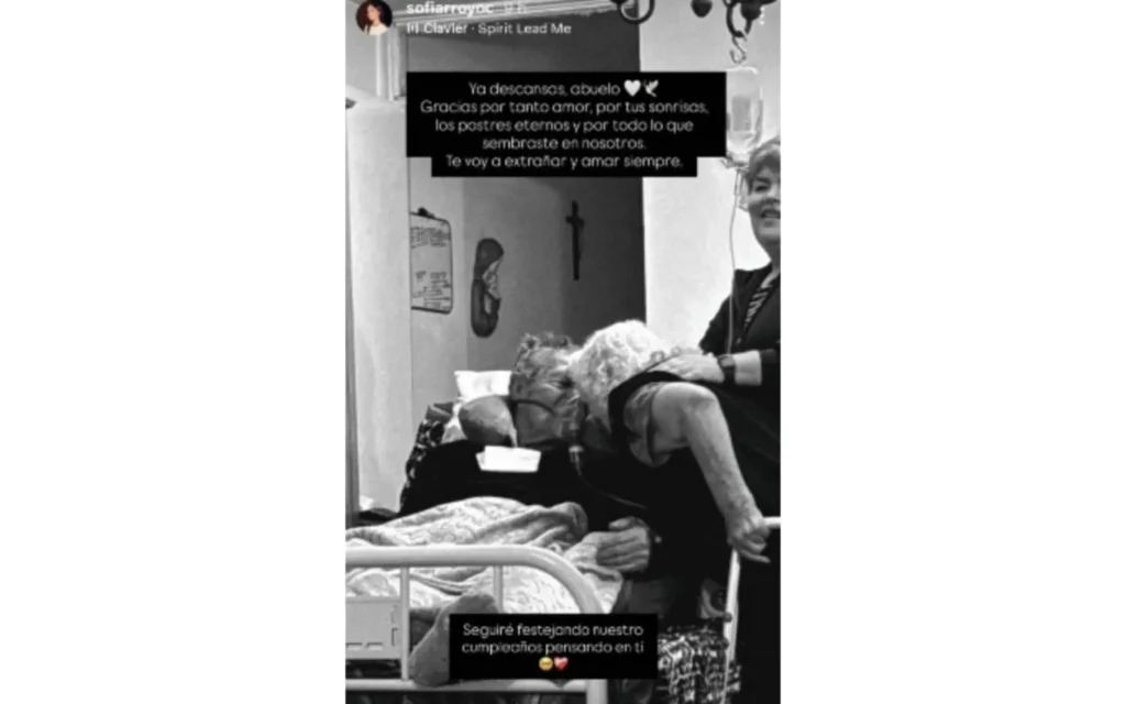 En una de sus primeras publicaciones, Sofía Arroyo difundió una imagen familiar en la que aparece su abuelo rodeado de seres queridos. Junto a la fotografía, expresó palabras de despedida en las que destacó el cariño y los recuerdos compartidos.