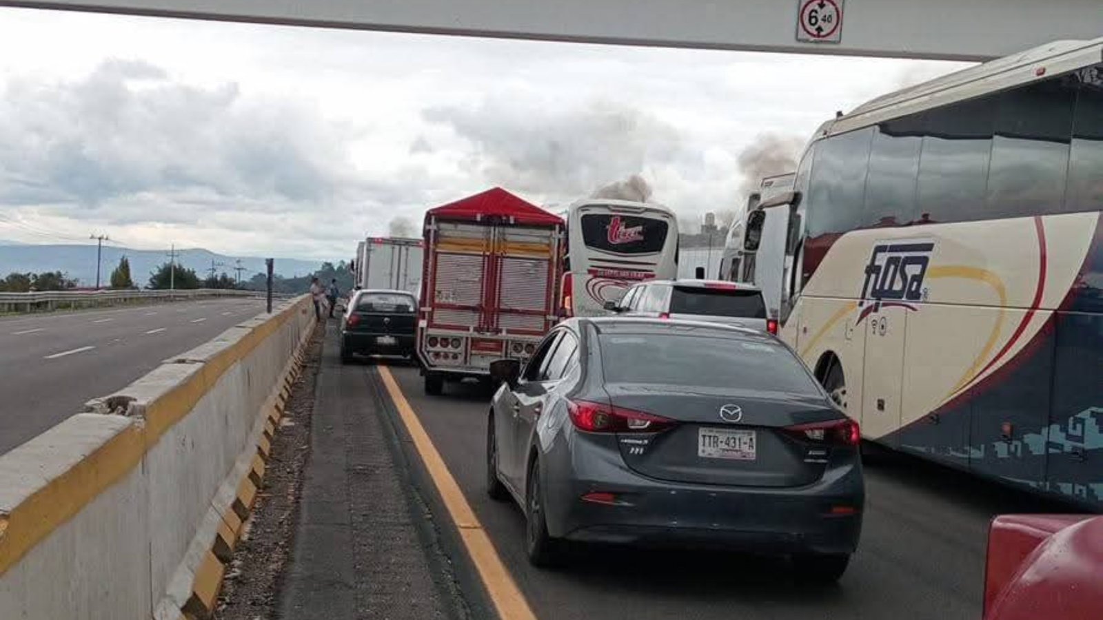 Este sábado 20 de diciembre se presenta un intenso caos vial debido a que un grupo manifestantes bloquean la autopista México-Puebla dirección a la Ciudad de México, a unos metros de subir el Puente de la Concordia.