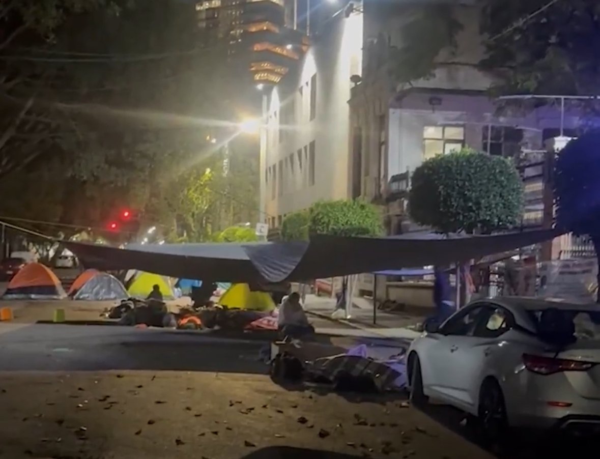 Manifestantes instalan campamento a las afueras de la Segob en la CDMX