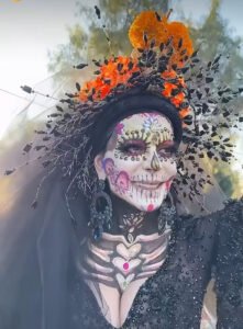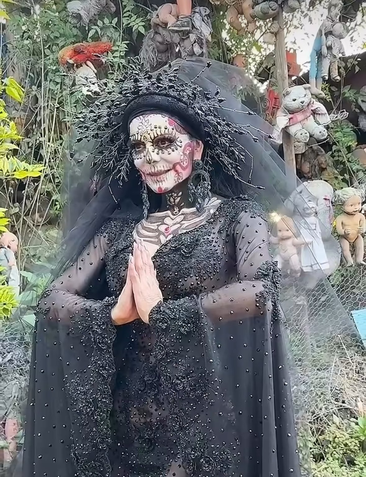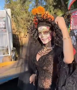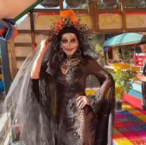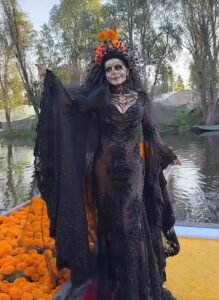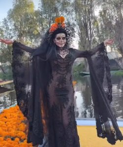 Para conmemorar el Día de Muertos, la actriz y cantante Maribel Guardia se caracterizó de forma espectacular de una catrina y se fue a recorrer en trajinera el canal de Xochimilco, donde además visitó la Isla de las Muñecas.