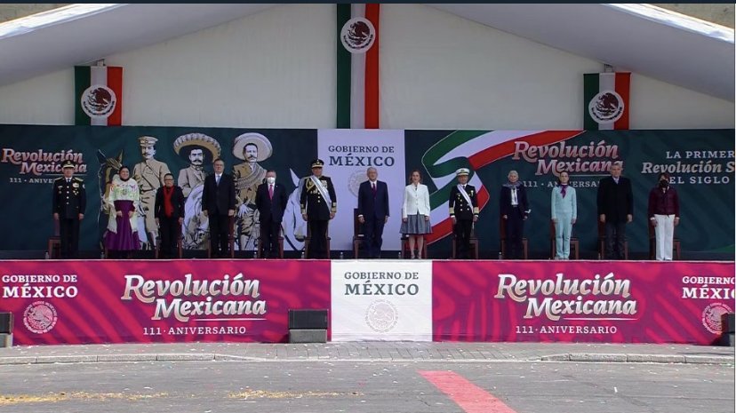 Ante miles de personas y miembros de las fuerzas armadas participantes, el Presidente de México, Andrés Manuel López Obrador destacó lo que llamó el «nuevo orden social» creado por la Revolución, en la que Francisco I. Madero terminó con la dictadura de tres décadas de Porfirio Díaz.