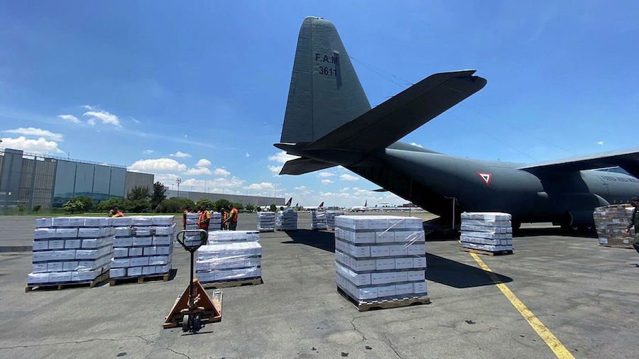 A través de su cuenta de Twitter, el funcionario subió un video donde se explica que la Defensa Nacional y la Fuerza Aérea Mexicana contribuyeron a esta labor. El avión Hércules C-130, de la Fuerza Aérea Mexicana y el cual despegó alrededor de 16:00 horas de este día, lleva víveres, agua y medicinas.
