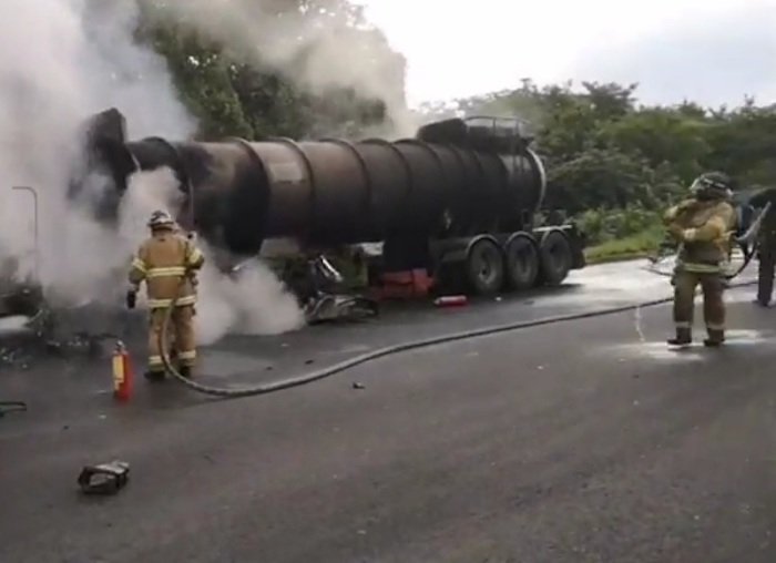 El chofer de la pipa accidentada viajaba acompañado de su esposa y su hijo menos de edad, a quienes al ver que se incendiaba la cabina logró sacar con vida, pero desgraciadamente él ya no pudo salir y murió calcinado sin que nada se pudiera hacer, a pesar que el personal de rescate escrito a la caseta de cobro llego de forma inmediata.