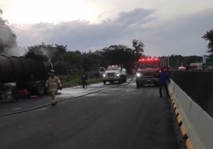 Un equipo del departamento de bomberos realizaron las maniobras para extinguir el fuego, además de los procedimientos de enfriamiento del remolque que contenía el diésel, que gracias a la rápida intervención no presentó fisuras que pudieran provocar una explosión.