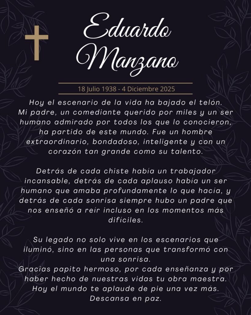 “Hoy el escenario de la vida ha bajado el telón. Mi padre, un comediante querido por miles y un ser humano admirado por todos los que lo conocieron, ha partido de este mundo. Fue un hombre extraordinario, bondadoso, inteligente y con un corazón tan grande como su talento”.