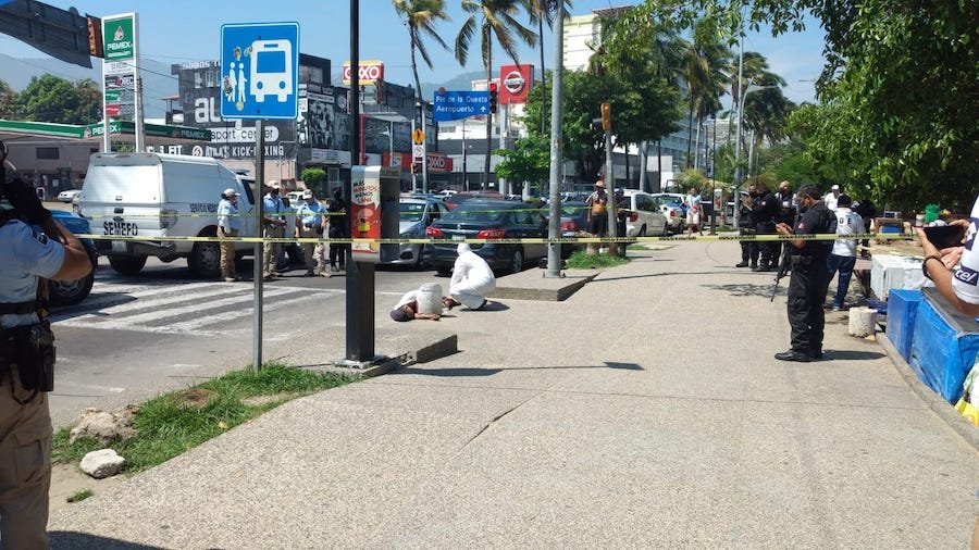 A través de una llamada anónima al 911 se reportó a una persona que había sido privada de la vida en plena Costera Miguel Alemán del Puerto de Acapulco. Tras el arribo de elementos de diversas corporaciones policiacas, se pudo constatar que se trataba del cuerpo de una persona privada de la vida con arma de fuego ya que el ahora occiso presentaba dos impactos de arma de fuego, al parecer calibre 9 mm.