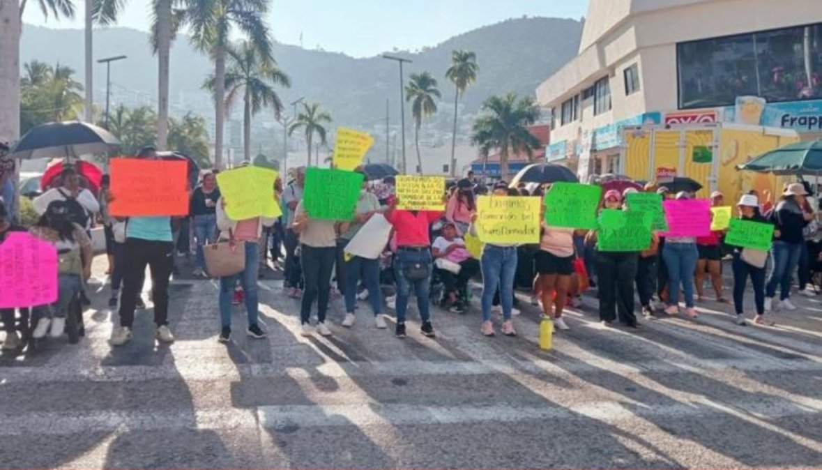 Un pequeño grupo de personas integrado por alumnos y padres de familia de la escuela primaria Marian Rodríguez del Toro, están realizando un bloqueo vial en ambos sentidos de la Costera Miguel Alemán, en Acapulco, a la altura de la Base Naval.