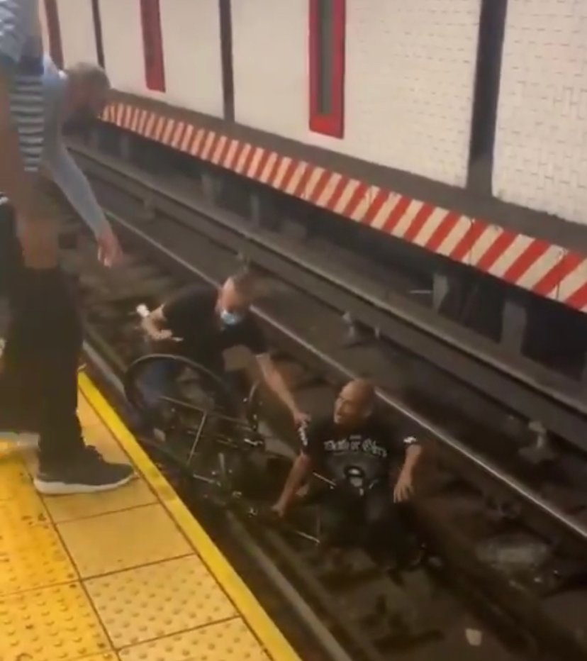 Un hombre con movilidad reducida en las piernas acabó cayendo a las vías del metro de la Ciudad de Nueva York ante el asombro de todas las personas que estaban presentes en el lugar, sin que se sepan las razones que provocaron la caída.