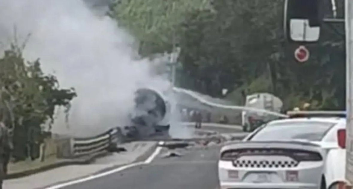 Este domingo una pipa se incendió luego de chocar y volcar cuando circulaba sobre la carretera México-Tuxpan, lo que ocasionó el cierre total de la circulación.