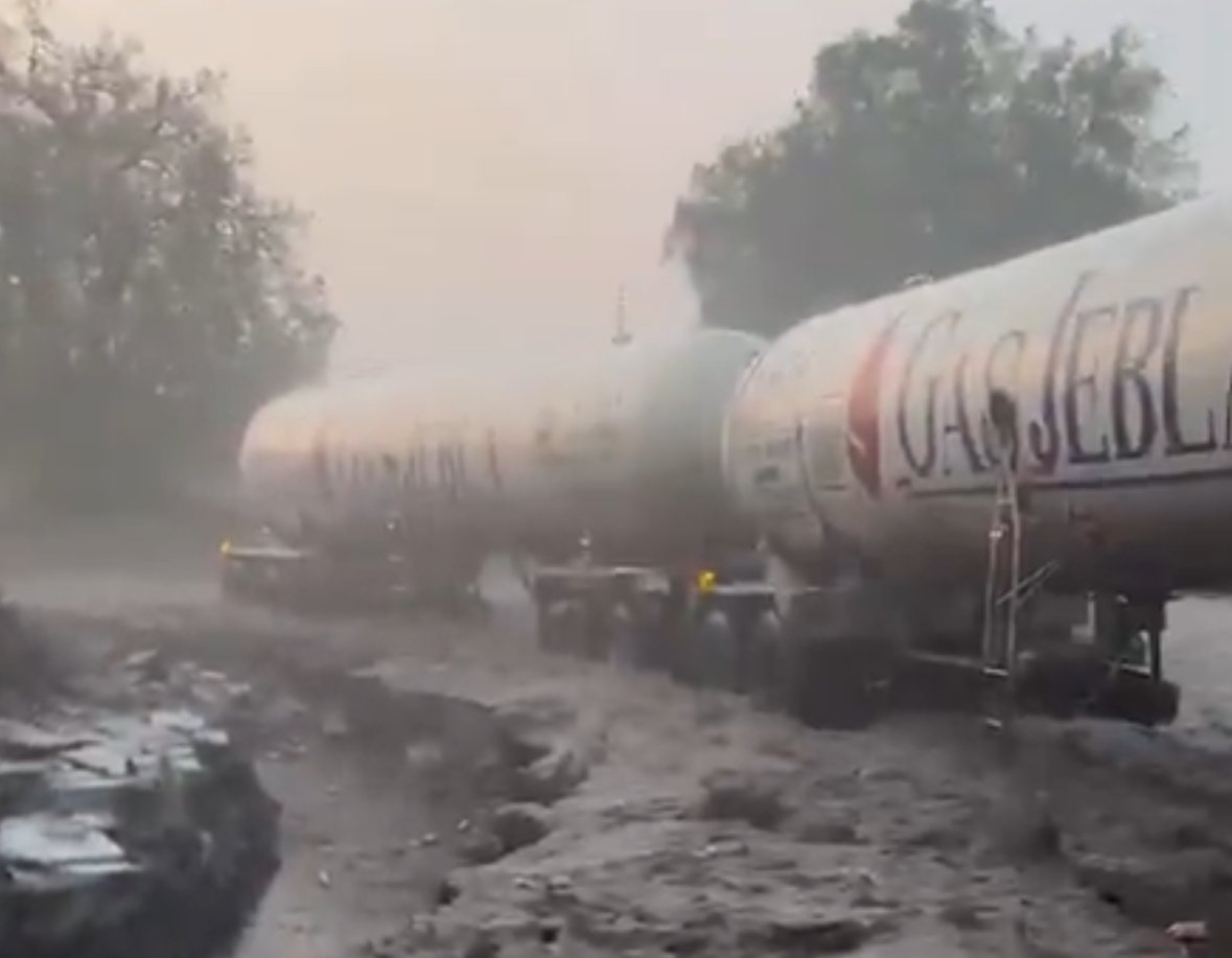 La mañana de este martes una pipa de gas de doble remolque quedó atascada en el kilómetro 41+788 de la autopista México-Pachuca debido a la gran acumulación de hielo en la carpeta asfáltica como resultado de la intensa granizada de las últimas horas.