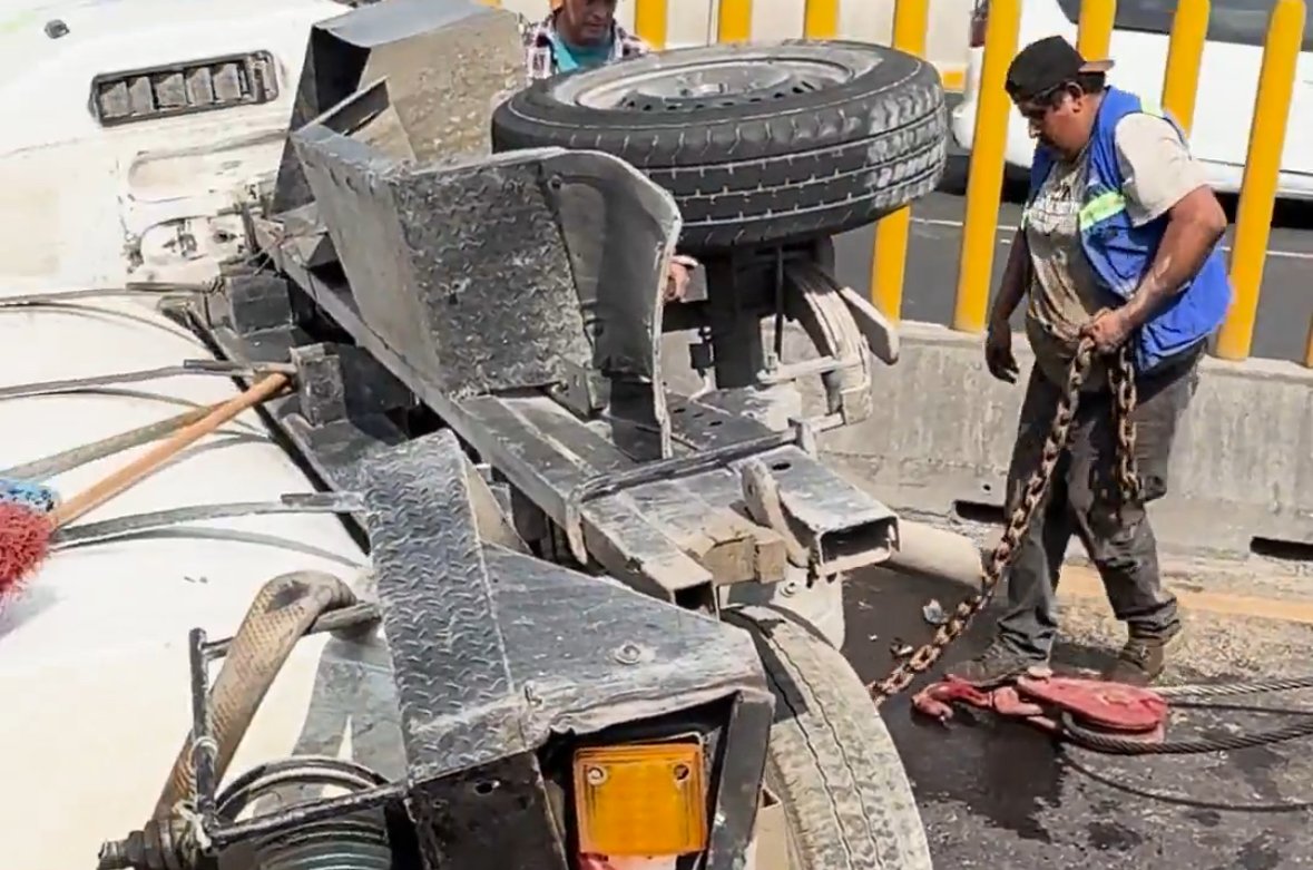 La tarde de este jueves se registró la volcadura de una pipa de limpieza cuando circulaba sobre el kilómetro 23 de la autopista México-Puebla, a la altura de Chalco, Estado de México.