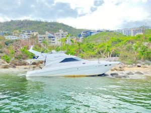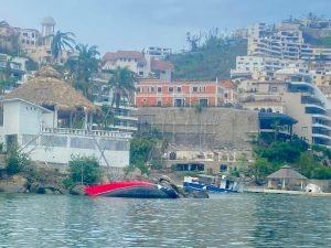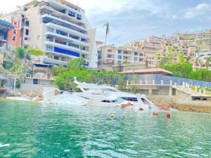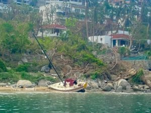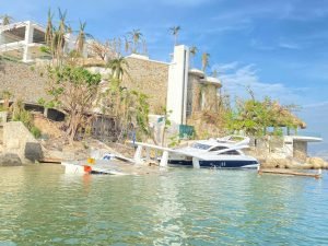 Además que por diversas circunstancias, los yates aún se pueden ver, o hundidos o encallados  en la playa, siendo testigos mudos de la violenta arremetida de Otis en ese destino de playa.