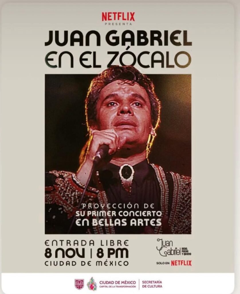 Las canciones de Juan Gabriel volverán a sonar en el Zócalo Capitalino, pues el concierto que ofreció en el Palacio de Bellas Artes será proyectado en el primer cuadro de la Ciudad de México el sábado 8 de noviembre a las 8 de la noche.
