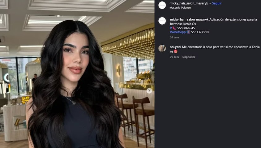 La cantante e influencer Kenia OS también pasó por las manos de Miguel de la Mora, quien le realizó un tratamiento de estilismo de alto nivel. Su visita fue destacada como parte de los servicios premium que el salón ofrecía a figuras con amplia proyección pública.