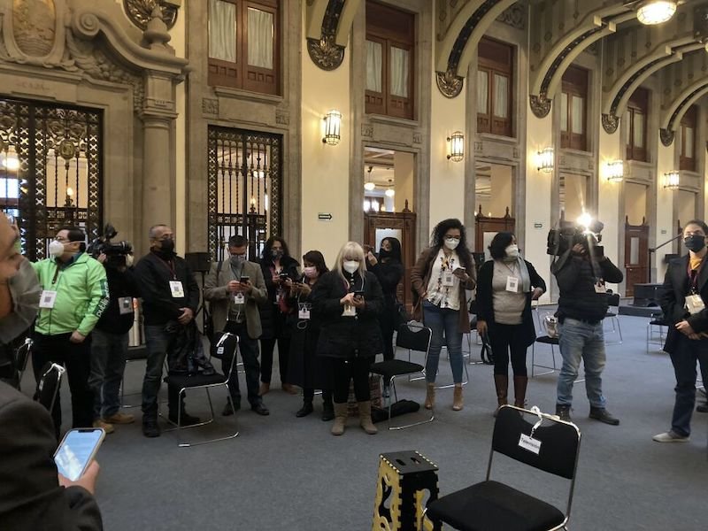 Reporteros protestan por asesinatos de Periodistas durante la conferencia ‘mañanera’ del Presidente AMLO