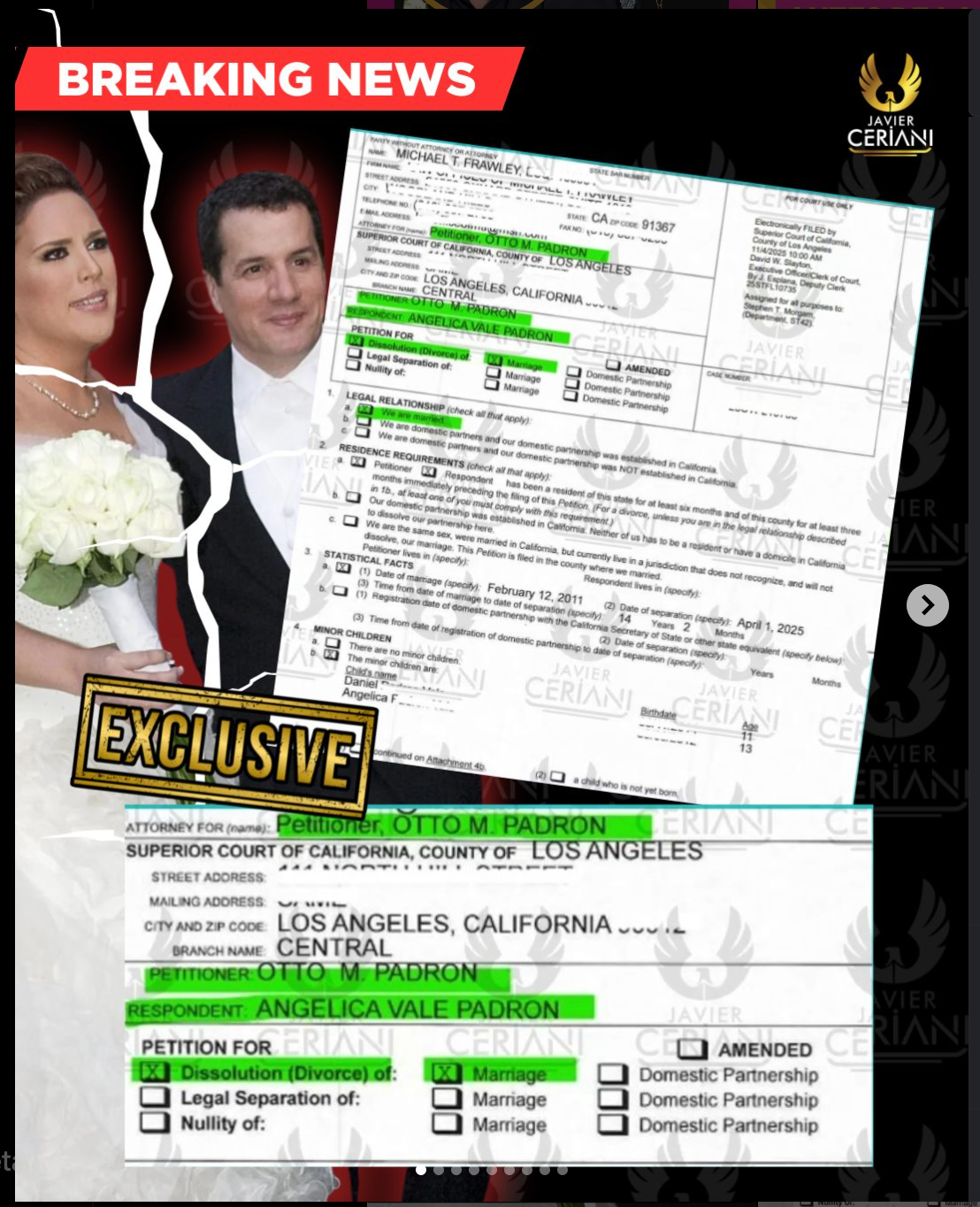 El divorcio de Angélica Vale y Otto Padrón continúa dando de qué hablar. Después de 14 años de matrimonio y dos hijos en común, la actriz mexicana y el ejecutivo de televisión pusieron fin a su relación, lo que ha despertado un sinfín de interrogantes sobre cómo se resolverán los temas legales, financieros y familiares que ahora enfrentan.