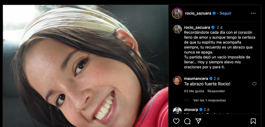 A seis años del fallecimiento de su hija Daniela, la conductora Rocío Sánchez Azuara compartió un mensaje cargado de amor, memoria y espiritualidad. A través de sus redes sociales, la presentadora de televisión rindió homenaje a la joven con una fotografía inédita y palabras que conmovieron a sus seguidores.