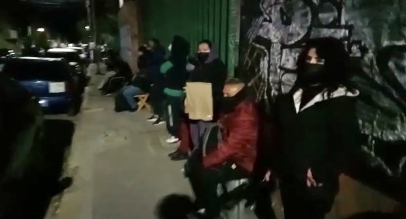personas que por la necesidad de aun aprueba y a pesar del inclemente frío, decidieron pernoctar a las afueras de la unidad médica, con la esperanza de obtener un lugar para realizarse la prueba COVID…