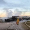 Alarma y una gran movilización de equipos de emergencia es lo que provocó el incendio de un tracto camión tipo Pipa que transportaba combustible sobre la autopista Lagos de Moreno – San Luis Potosí, a la altura del kilometro 53, perteneciente al municipio de Ocampo, Guanajuato.