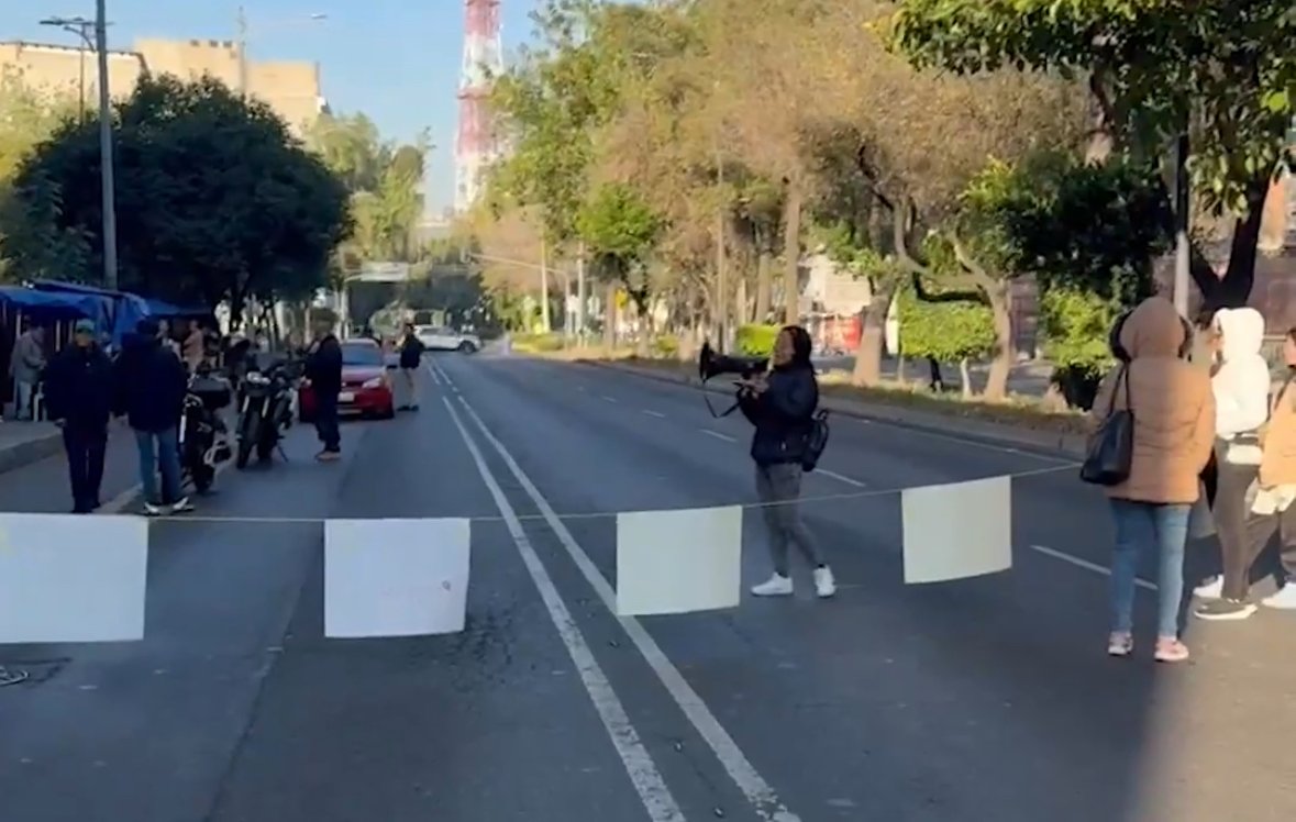 Un pequeño grupo de manifestantes bloquean avenida Dr. Río de la Loza con dirección al Eje Central, en la colonia Doctores, alcaldía Cuauhtémoc, al exterior de la Junta de Padres de Conciliación y Arbitraje en la Ciudad de México.