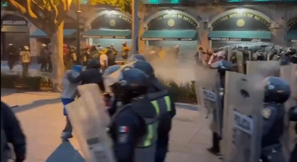 Se registraron enfrentamientos en la Plaza de la Constitución al finalizar la marcha por los 57 años de la matanza de Tlatelolco del 2 de octubre.