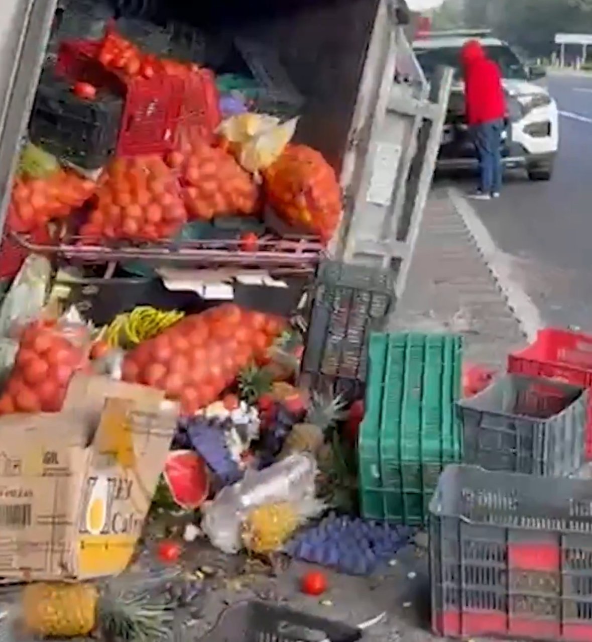 La mañana de este martes se registró la volcadura de una camioneta que transportaba poco más de una tonelada de verduras sobre la autopista México-Cuernavaca, a la altura del kilómetro 35+500, sin que afortunadamente se reportaran personas lesionadas.