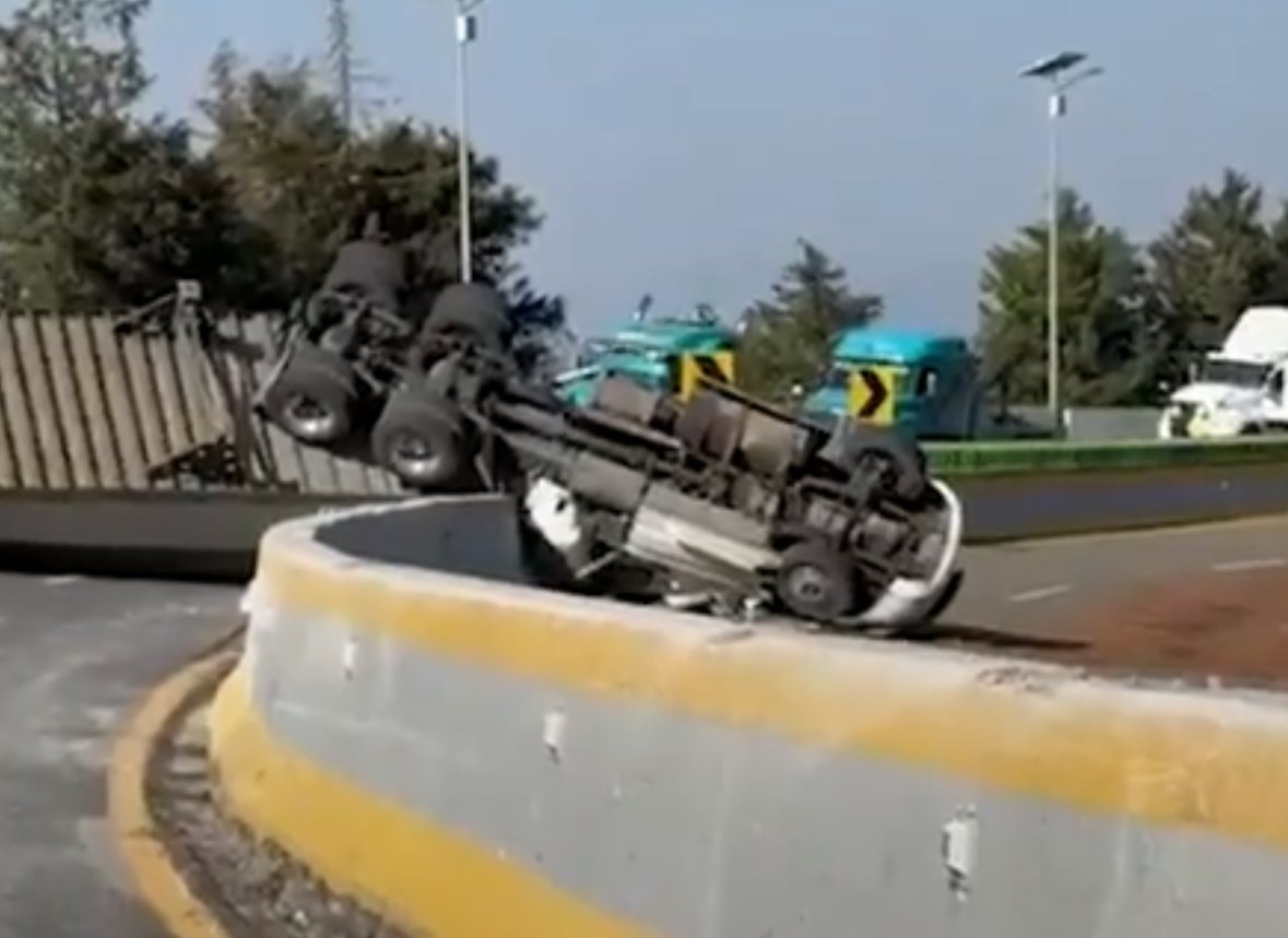 Se reporta que está mañana de lunes el tráfico está totalmente detenido en ambos sentidos de la autopista México-Cuernavaca a la altura de la curva de La Pera, luego de la volcadura de un tráiler.