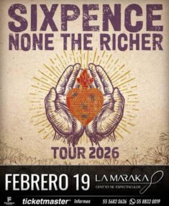 -Ya que andamos por los terrenos de la música y si eres adicto a la droga del siglo 21: «nostalgia», pues te recomiendo acudas al concierto que va a ofrecer el grupo estadounidense originario de New Braunfels, Texas, Sixpence None The Richer, estará presente en La Maraka este Jueves 19 de Febrero como parte de su Tour 2026 y donde podremos disfrutar de su cálido sonido pop indie noventero con sus grandes éxitos y canciones más conocidas,  «Kiss Me» y «Breathe Your Name», además de sus clásicas versiones de «Don’t Dream It’s Over»  y «There She Goes».
