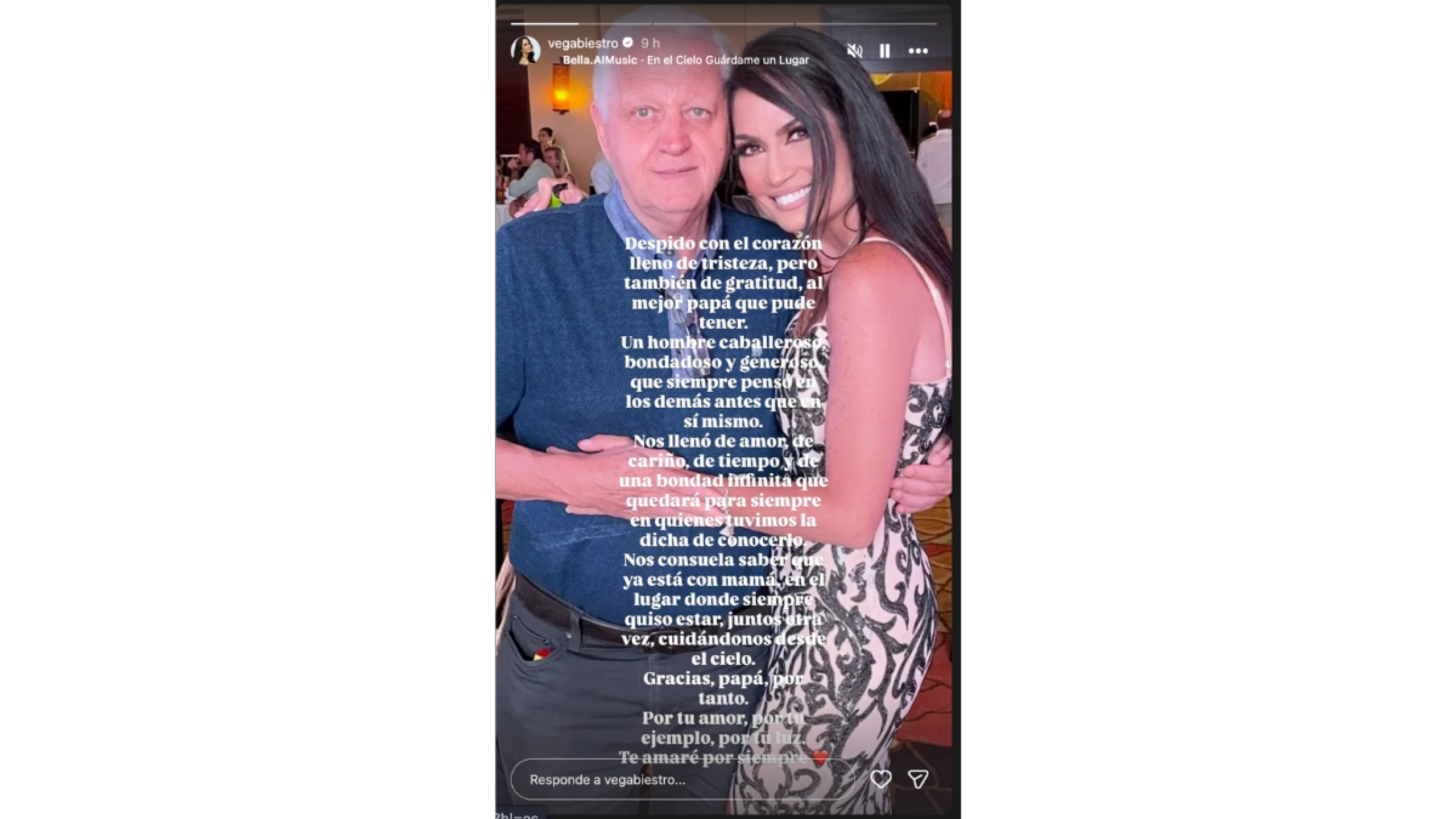 “Nos consuela saber que ya está con mamá, en el lugar donde siempre quiso estar, juntos otra vez, cuidándonos desde el cielo. Gracias, papá, por tanto, por tu amor, por tu ejemplo, por tu luz. Te amaré por siempre.”