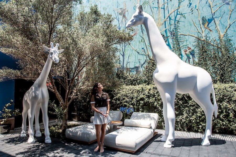 Cabe destacar que el nombre de esta muestra hace referencia a las bellas esculturas que se encuentran en el patio central la terraza de la casa azul, que forman parte de Design Hunter, que son justamente dos jirafas blancas tamaño real cuyo trabajo además de sorprender a los asistentes, es un homenaje a estos animales cuya especie acaba de extinguirse.