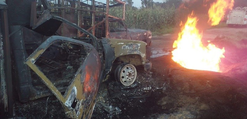 Hasta el lugar se trasladaron elementos de Protección Civil y bomberos del municipio quienes se percataron de que el poliducto había sido perforado. En el lugar también se calcinaron dos camionetas, que al parecer, pertenecían a los presuntos huachicoleros.