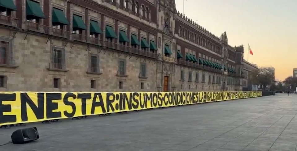 Amanera de protesta y denuncia, es que parte del personal de salud del IMSS-BIENESTAR, tapizo esta mañana de martes, las vallas que están frente a Palacio Nacional, en el zócalo de la Ciudad de México, para denunciar falta de insumos en hospitales, situación que se hace más delicada al estar en medio de un grave brote de sarampión.