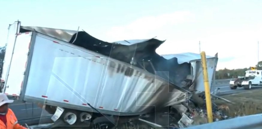 Un tráiler perdió el control y chocó contra la barra de contención al avanzar hacia la desviación rumbo a las Pirámides de Teotihuacán, en la Carretera México-Tulancingo, por lo que del fuerte impacto la unidad se incendió.