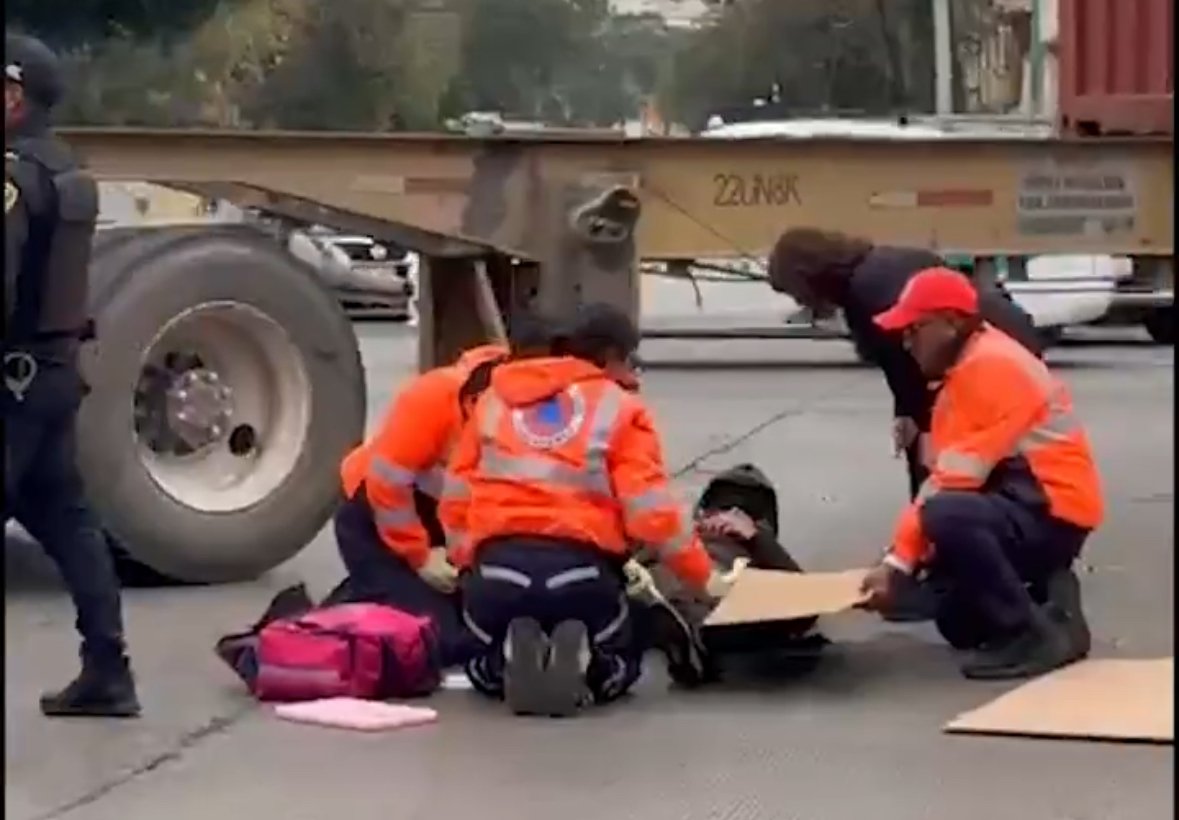 Un motociclista resultó lesionado luego de ser atropellado por un tráiler que dio una vuelta prohibida sobre la Calle Prolongación Guerrero, en el cruce con San Simón, en la colonia San Simón Tolnahuac, en la alcaldía Cuauhtémoc de la Ciudad de México.