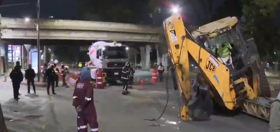 La madrugada de este viernes, tres trabajadores capitalinos resultaron lesionados cuando un tráiler que transportaba una excavadora chocó contra el puente de Acoxpa y Tlalpan, al sur de la Ciudad de México.