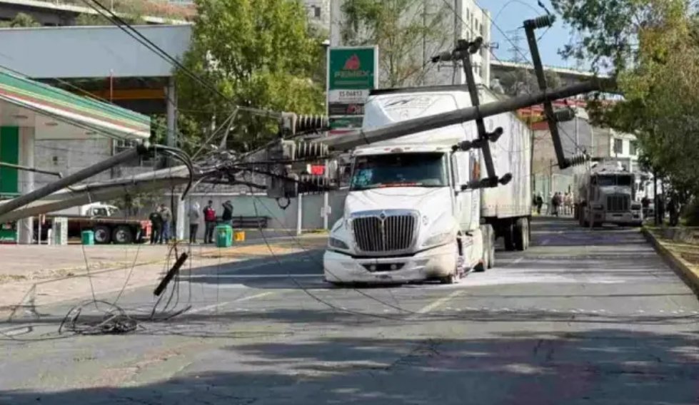 Un tráiler deja sin luz eléctrica a todo una colonia al chocar y derribar varios postes de luz que se localizaban a un costado de la Vía Gustavo Baz en Tlalnepantla, Estado de México, a la altura de Barrientos, por lo que la circulación vial fue suspendida la mañana de este lunes.