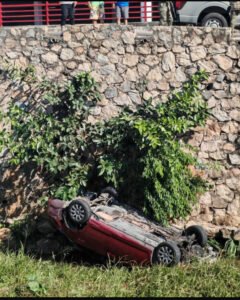La tarde de este lunes una persona resultó lesionada luego de perder el control de su automóvil y precipitarse al vacío de aproximadamente 7 metros de altura y caer en un canal pluvial en la esquina de la avenida Universidad en el puerto de Acapulco.