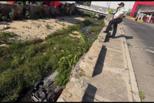 Un automóvil cae a un canal pluvial de una altura aproximada de 7 metros en calles de Acapulco; hay un herido (Fotos)