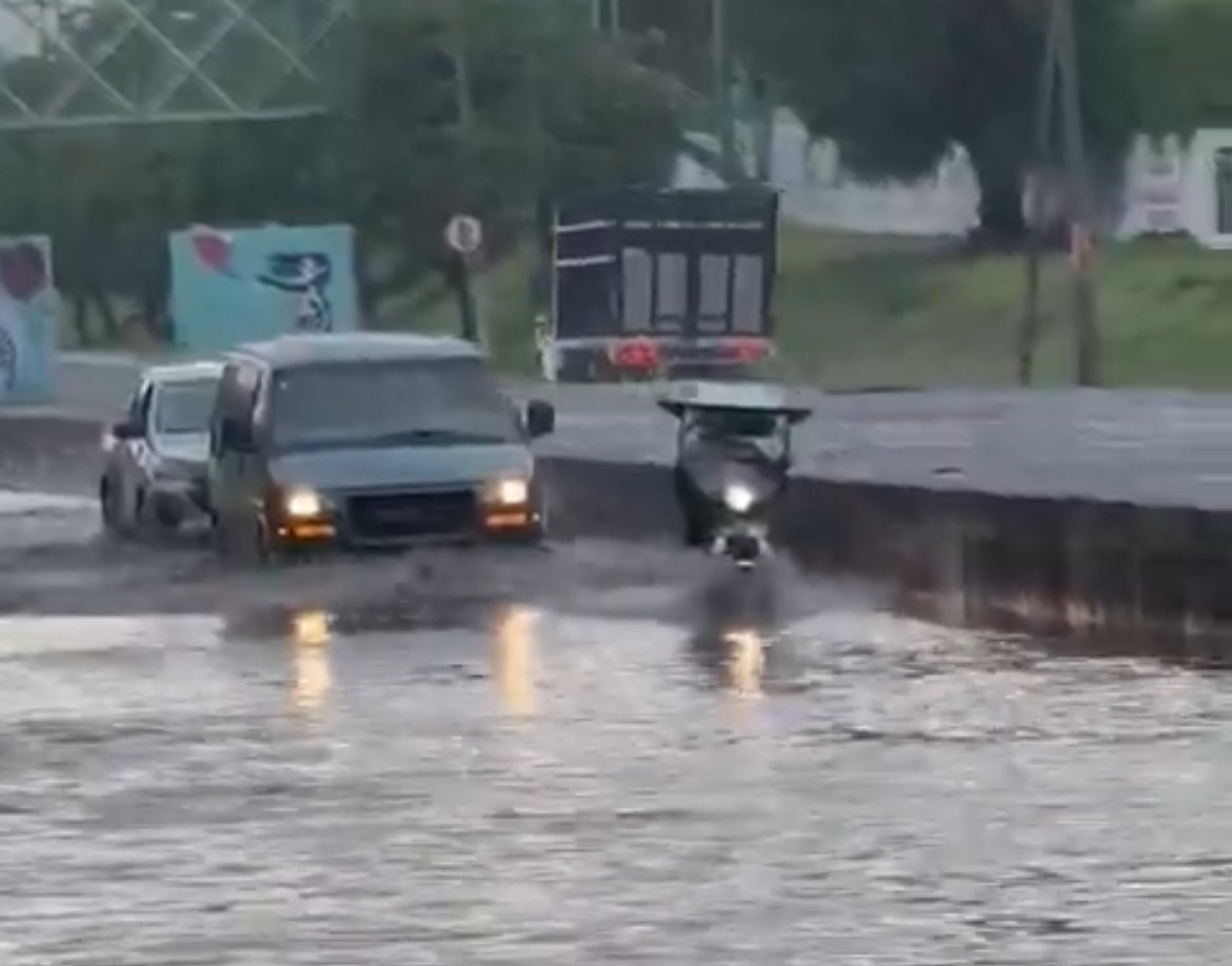 En el lugar, automovilistas y motociclistas tienen dificultades para cruzar la vialidad y en algunos tramos la circulación está totalmente cerrada.