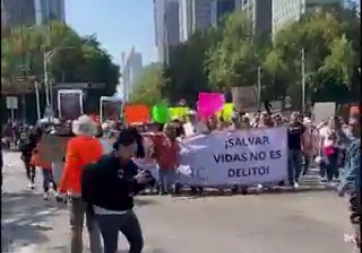 Un gran contingente de manifestantes avanza sobre Paseo de la Reforma con destino a la plancha del Zócalo, causando un enorme caos vial en la zona centro de la Ciudad de México.
