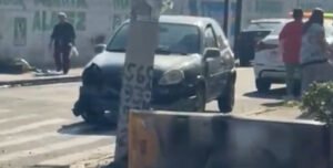 De acuerdo con los informes, un auto compacto impactó a exceso de velocidad a la camioneta, provocando que quedara recostada sobre su lado izquierdo, dejando a una persona herida.