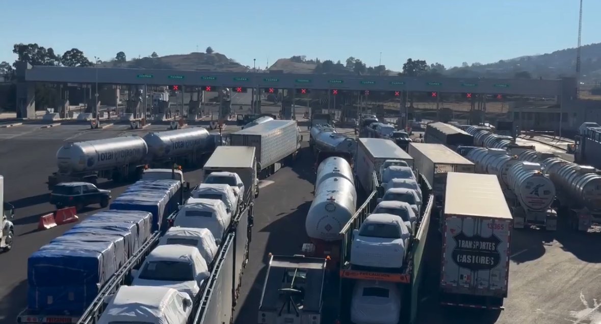 La mañana de este jueves se reporta que al menos hay una fila de autos varados que supera los 10 kilómetros de largo, solo hay paso por la vía libre.