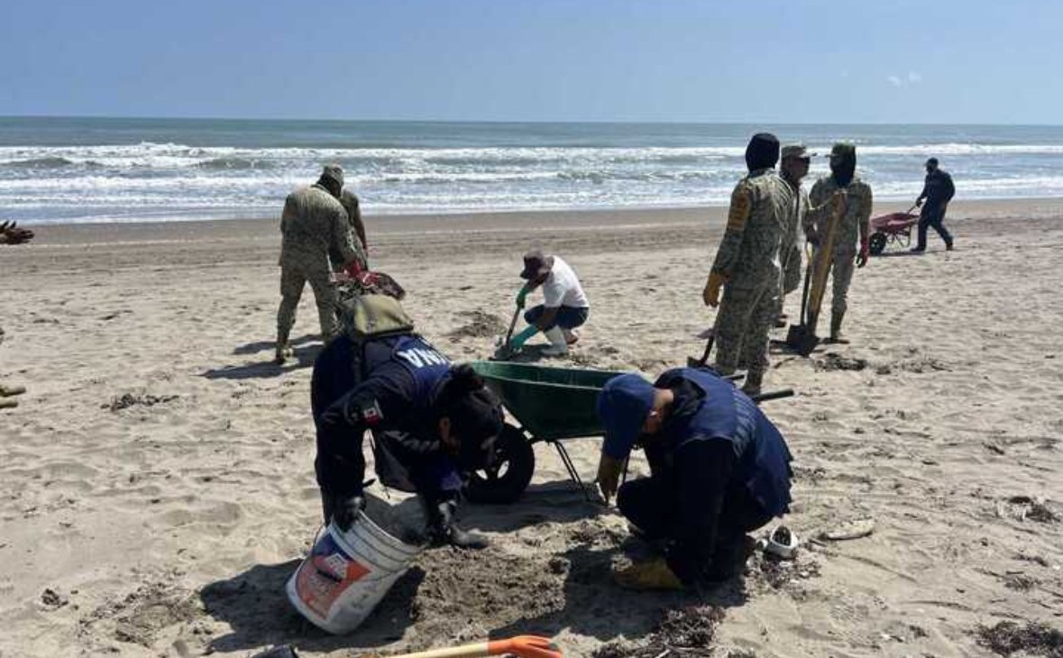 La Secretaría de Marina reportó el retiró 3.5 toneladas de residuos petroleros en costas de Veracruz, aunque esto no ha sido suficiente.