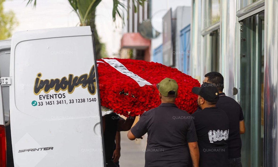 Hasta la funeraria llegaron un par de ramos de rosas con dedicatoria para “El Mencho”, una en forma de Gallo y la segunda una corona con las iniciales CJNG.